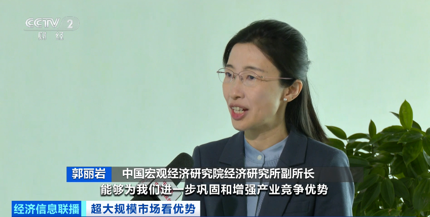 中国宏观经济研究院经济研究所副所长 郭丽岩:我国超大规模国内市场优势,能为进一步巩固和增强产业竞争优势提供有力支撑。我们国内市场纵深广阔,下沉市场发育的程度也日渐提升,能够为各类行业和企业不断创新,因地制宜创新产品提供更多机会。从而带动实体经济,尤其是制造业,向更高端、更绿色融合化发展。