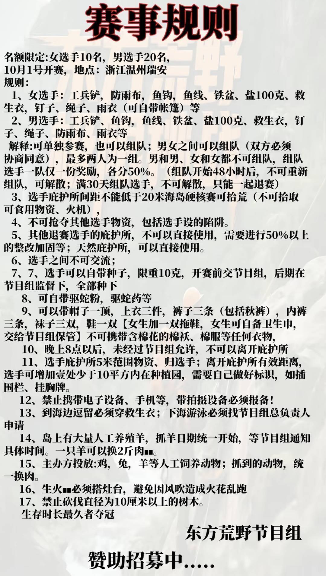 现在这档比赛还在硬着头皮办,剩下两名男选手仍在岛上“求生”。但网友已经吵翻了:“这就是拿人命当流量密码!”“建议查查主办方有没有资质,别再让更多人上当。”毕竟,当安全承诺成了空头支票,当公平竞赛沦为笑话,这样的“荒野挑战”,不办也罢。