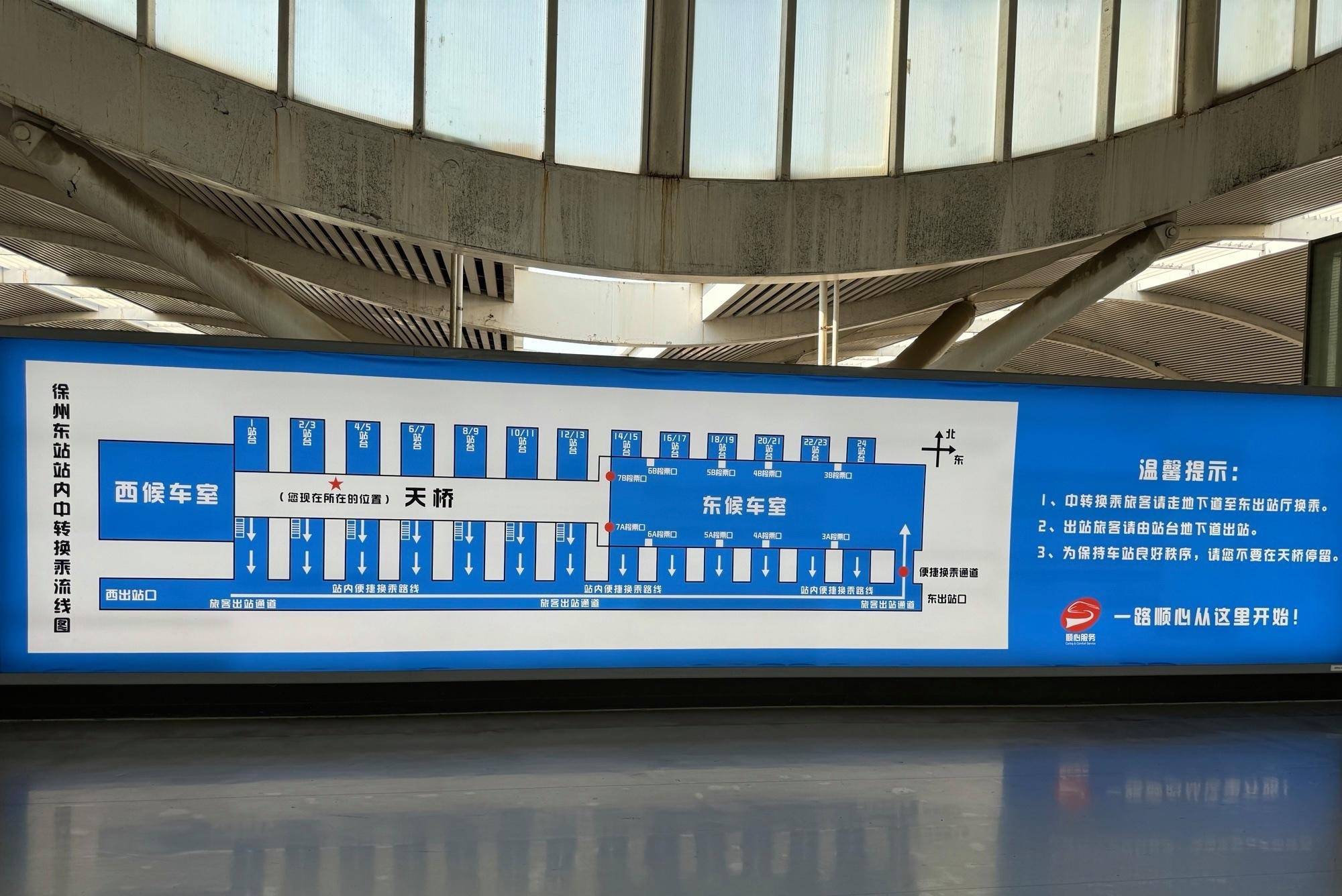 “铁路徐州站”公众号消息,2019年12月15日,东候车厅开通使用。随后,该公众号发布了在徐州东站的中转换乘方式,并沿用至今。