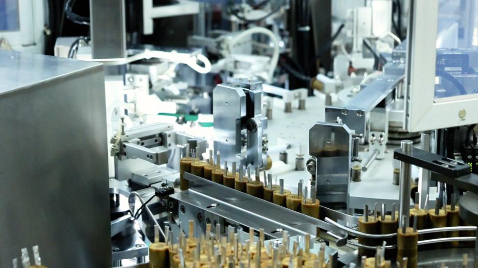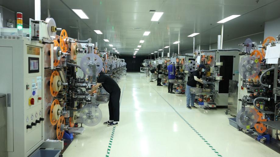 (公司生产的电解电容器产品从流水线上源源不断下线)